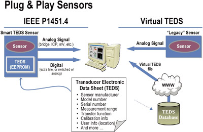 IEEE1451.3啟動處在多分支網(wǎng)絡中的傳感器的運行;于2003年通過的IEEE P1451.4規(guī)定與數(shù)字傳感器相關(guān)的數(shù)據(jù)(像傳感器的類別、型號、操作參數(shù)以及位置等)必須能夠以電子數(shù)據(jù)表的格式從整合在傳感器中的EEPROM(電可擦除只讀存儲器)存儲器中讀取,這種數(shù)據(jù)表被稱為變換器電子數(shù)據(jù)表(TEDS-Transducer Electronic Data Sheet)。IEEE P1451.4標準極大地簡化了傳感器的布線以及更換故障傳感器的問題。它同時也免除了傳感器在設置和校準方面的人工干預,這種干預即費時又易出錯。這樣傳感器就成了即插即用的裝置。在國家儀器網(wǎng)站(National Instruments’ web site)中有一個有效TEDS的數(shù)據(jù)庫,它包括了可以在IEEE P1451網(wǎng)絡中使用的各種老式的或沒有EEPROM的傳感器的專門資料。IEEE 1451.5標準仍在審核階段,它規(guī)定的是將TEDS連接到無線網(wǎng)絡中的必要條件,如與802.11、藍牙或ZigBee等的連接。最近又提出了IEEE 1451.6標準議案,它定義TEDS和CAN總線的接口。