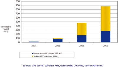 市場調(diào)研機構(gòu)iSuppli認為,移動傳感器(motion sensors)將代替?zhèn)鹘y(tǒng)的傳感器成為MEMS市場的主要推動力,至少在2012年之前會是這樣。尤其是加速計(accelerometer),它在便攜式消費電器中將被用來啟動一系列高級界面功能。傳感器在消費電器中的應用正在迅速飆升,像用于游戲、筆記本電腦和數(shù)碼相機中的移動傳感器就是實例。雖然以傳感器為基礎的微型機電系統(tǒng)(MEMS-microelectromechanical systems)的價格已經(jīng)在迅速下降,它們還是太昂貴而不能被用在一些對價格敏感的消費產(chǎn)品中。