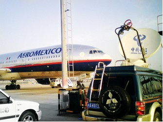 圖2:中國(guó)電信上海公司緊急在浦東機(jī)場(chǎng)遠(yuǎn)機(jī)位安裝3G無(wú)線全球眼