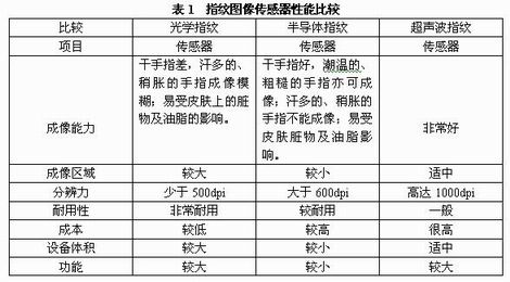 為克服物理方式的缺點(diǎn),開發(fā)的光學(xué)傳感器、半導(dǎo)體傳感器、超聲波傳感器等對(duì)獲取高質(zhì)量指紋圖 像提供了良好的技術(shù)保障,具有很好實(shí)用價(jià)值。同時(shí),更先進(jìn)的指紋圖像傳感器亦在研發(fā),目的是獲得足夠的指紋細(xì)節(jié),并使指紋圖像達(dá)到較高分辨力,提高指紋識(shí) 別準(zhǔn)確性、可靠性。本文主要介紹各種指紋圖像傳感器技術(shù)關(guān)鍵、性能特點(diǎn),并簡(jiǎn)要介紹其應(yīng)用情況及發(fā)展趨勢(shì)。