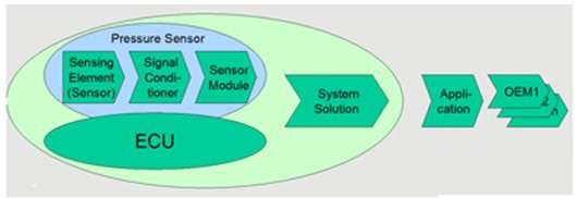 汽車傳感器在安全方面的應(yīng)用正日益增加。對于可以在危險的剎車條件下減小剎車距離的剎車輔助系統(tǒng)來說,需要一個傳感器來測量剎車系統(tǒng)的壓力,使得ECU能夠檢測出由駕駛員所發(fā)出的剎車動作。傳感器是激活A(yù)BS的關(guān)鍵,故傳感器必須100%準確。要保證這一點,自檢功能必須盡可能的全面。