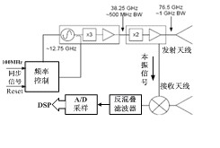 在圖2所示傳感器網(wǎng)絡(luò)系統(tǒng)框圖中,基于77GHzMMIC技術(shù)的雷達(dá)傳感器是構(gòu)成汽車?yán)走_(dá)網(wǎng)絡(luò)的前端關(guān)鍵硬件,后端的信息處理需要用數(shù)字信號(hào)處理器等高速運(yùn)算單元來(lái)完成。傳感器、數(shù)字信號(hào)處理單元以及數(shù)據(jù)融合決策系統(tǒng)之間采用以太網(wǎng)、高速串行連接的方式傳送數(shù)據(jù),以滿足高數(shù)據(jù)率的傳輸要求。