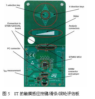 ST公司設(shè)計了完整的基于RC充電檢測的電容式感應(yīng)觸摸方案的完整設(shè)計,包括PCB和完整的源程序,以及基于STM8S的標(biāo)準(zhǔn)觸摸感應(yīng)庫(TouchSenseLibrary:TSL)和應(yīng)用API接口,采用易于移植的C設(shè)計,用戶可以方便地應(yīng)用于其他任何MCU系統(tǒng)中。因?yàn)镽C充電理論涉及的專利已經(jīng)對公眾開放,所以完全沒有專利的限制。