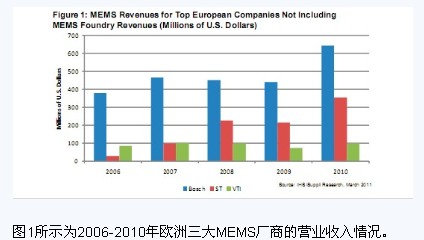 據(jù)IHS iSuppli公司的研究,2010年微機(jī)電系統(tǒng)(MEMS)產(chǎn)業(yè)蓬勃發(fā)展,總體增長(zhǎng)了18%,而歐洲三家廠商更是取得了上乘表現(xiàn)。