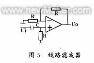 通常,經(jīng)典濾波器用得最多。濾波電路可以由無源元件R、L、C組成,如圖5所示的線路濾波器;也可以包含有源元件(如圖6所示),它的優(yōu)點(diǎn)主要是具有一定的信號(hào)放大和帶負(fù)載能力。濾波電路從功能上又可分為四類:低通(LP)、高通(HP)、帶通(BP)、帶阻(BS)濾波器。每一種又有模擬(AF)與數(shù)字(DF)濾波器兩種形式。由于傳感器信號(hào)一般為緩慢變化的信號(hào),故選用低通濾波器抑止高頻噪聲信號(hào)最多。通常如巴特沃斯濾波器、切比雪夫?yàn)V波器、橢圓濾波器等。常用低通濾波電路如圖6所示。