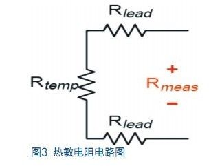 與熱敏電阻相似,鉑電阻溫度傳感器(RTD)也是用鉑制成的熱敏感電阻。當(dāng)通過測量電壓計算RTD 溫度時,數(shù)字萬用表用已知電流源測量該電流源所產(chǎn)生的電壓。這一電壓為兩條引線(Vlead)上的壓降加RTD上的電壓(Vtemp)。例如,常用RTD 的電阻為100Ω,每1℃僅產(chǎn)生0.385Ω的電阻變化。如果每條引線有10Ω電阻,就將造成26℃的測量誤差,這是不可接受的。所以應(yīng)對RTD作4線歐姆測量。