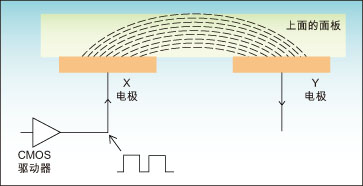 電容式觸控技術(shù)在廚房設(shè)備中的應(yīng)用已經(jīng)有幾年了,例如在烤箱和煎鍋的不透明玻璃面板后面采用分離按鍵實(shí)現(xiàn)。這些觸摸控制鍵逐漸替代了機(jī)械按鍵,因?yàn)楹笳呔哂惺褂脡勖獭⒉粔蛐l(wèi)生等方面的問題,而且還有在面板上開孔安裝按鍵的相關(guān)成本,圖1是電容式感應(yīng)技術(shù)原理示意圖。