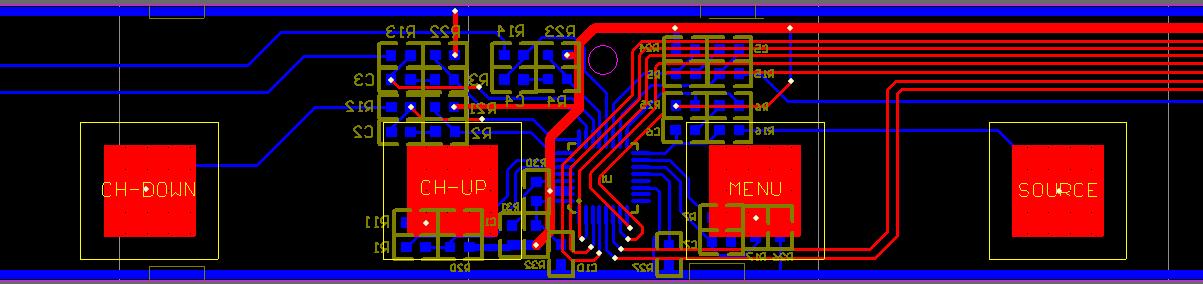 d.如果是單層板,感應(yīng)電極附近不要有高頻線路,其他線路也盡量遠(yuǎn)離感應(yīng)電極及其連線。如果選用的IC有AKS功能,請(qǐng)盡量采用此功能以減少鄰近的感應(yīng)電極互相干擾。[page]