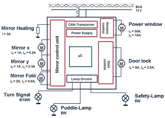 車門模塊中的負(fù)載特性和功能千差萬別。系統(tǒng)設(shè)計(jì)師面臨的挑戰(zhàn)是如何高效地驅(qū)動(dòng)所有負(fù)載并且同時(shí)滿足設(shè)計(jì)規(guī)范要求和成本目標(biāo)。