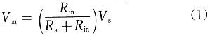 高阻抗信號(hào)測(cè)量,易受到測(cè)量系統(tǒng)輸入阻抗的分壓與系統(tǒng)輸入偏置電流的影響。如圖1所示,將被測(cè)高阻抗信號(hào)源與測(cè)量系統(tǒng)相連,信號(hào)源的戴維寧等效電路由Vs與Rs串聯(lián)而成。假定測(cè)量系統(tǒng)的等效輸入電阻為Rin,輸入端電壓為Vin,由于Rs與Rin的分壓,使得輸入端電壓減小,測(cè)量系統(tǒng)的輸人端電壓為:
