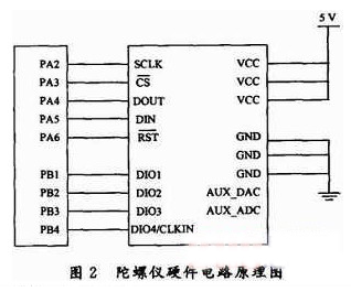 陀螺儀硬件電路原理圖如圖2所示,選用LM3S8962自帶的SPI硬件接口對ADIS16365進(jìn)行操作,在電路設(shè)計(jì)中只需要直接將LM3S8962的SPI硬件I/O接口與ADIS16365相應(yīng)的接口連接起來?! ?/p>