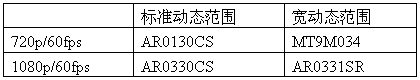 表1 Aptina的高清監(jiān)控傳感器組合