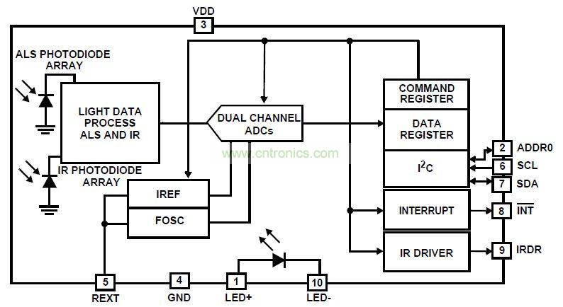 3、雙通道ADC并行作環(huán)境光測量和接近檢測