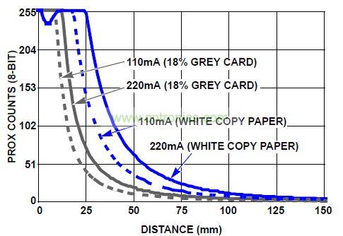 ISL29043是一款低功耗的環(huán)境光和接近檢測傳感器,典型的工作電流只有136μA(110μA用于傳感器和內(nèi)部電路,約28μA用于LED),這是在220毫安紅外LED電流,點亮脈沖電流持續(xù)時間為100μs,休眠時間為800mS的條件下測得的。