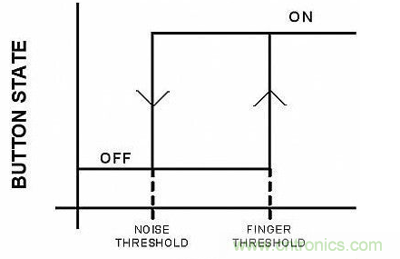 PCB還可能受到寄生電容的影響,這種電容最大可達(dá)20pF,它會(huì)在電容觸摸傳感器視為受到按壓時(shí),使閾值發(fā)生偏移,從而改變其靈敏度。為了對(duì)寄生電容進(jìn)行補(bǔ)償,可以采用對(duì)DAC編程的方法,以抵消CDC的輸入。對(duì)于各PCB來(lái)說(shuō),這種寄生電容是一致的,因此可以在制造PCB的時(shí)候進(jìn)行簡(jiǎn)單的調(diào)整,這樣就不需要外部RC調(diào)諧元件,從而使材料、裝配和測(cè)試相關(guān)的成本最低。單獨(dú)調(diào)整每個(gè)傳感器的偏移,使設(shè)計(jì)者可以充分利用轉(zhuǎn)換器的分辨率。