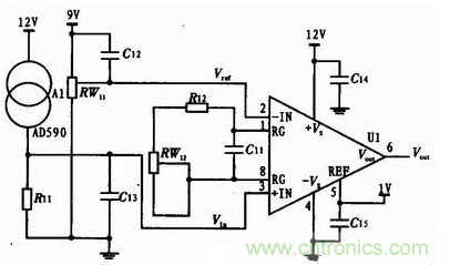 圖2:AD590信號(hào)調(diào)理變換電路