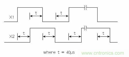 該芯片產(chǎn)生的正交X方向輸出信號(hào)模擬了普通編碼器的輸出。X和Y信號(hào)都可以用于2D系統(tǒng)。OM02以最高約25kHz的頻率產(chǎn)生X1和X2正交信號(hào)。圖1顯示了正向X運(yùn)動(dòng)(向右方向)的時(shí)序圖。這種正交輸出在需要時(shí)還可以用于直流步進(jìn)電機(jī)控制。