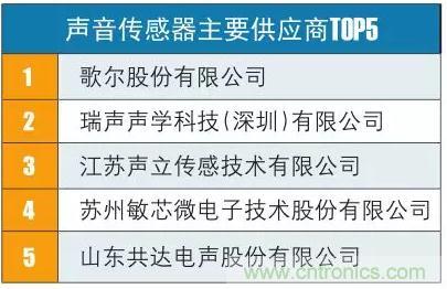 目前,傳感器與MEMS(微機電系統(tǒng))的結(jié)合,已成為當(dāng)前傳感器領(lǐng)域關(guān)注的新趨勢,這一點在聲音傳感器領(lǐng)域也不例外,其中歌爾股份就是全球MEMS麥克風(fēng)的龍頭企業(yè),歌爾股份成立于2001年,專注聲學(xué)科技,市場占有率居世界同行業(yè)之首,在國際排名第三。