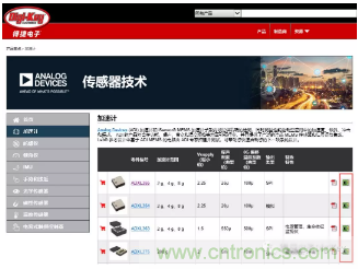 舉個(gè)例子, ADI三軸加速度傳感器ADXL355BEZ配套的評估板可以在Digi-Key的產(chǎn)品頁面中配用欄中找到匹配的評估板EVAL-ADXL355Z。也可以通過ADI加速度傳感器選擇與開發(fā)板選擇頁面中最后一欄中找到對應(yīng)的開發(fā)板。