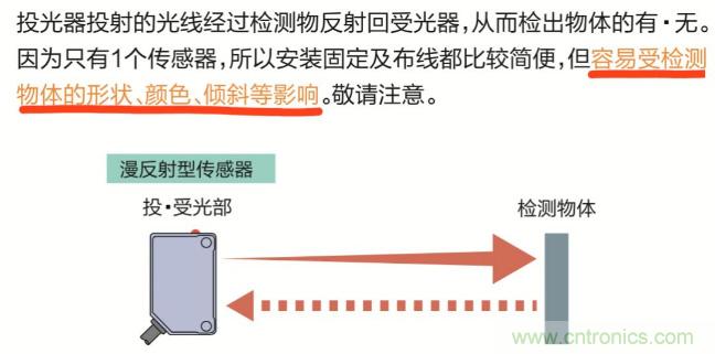 對射型光電傳感器:不受檢測物體的形狀、顏色、傾斜等影響
