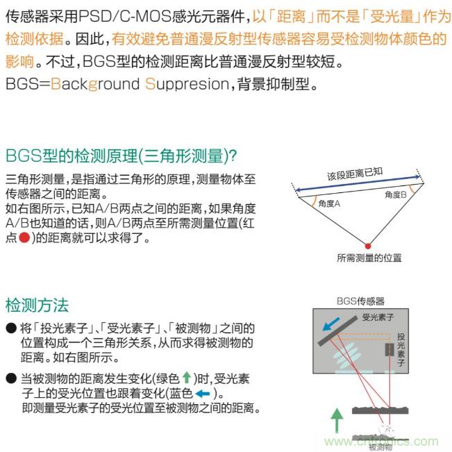 背景抑制型光電傳感器:可以有效避免普通漫反射傳感器容易受檢測物體顏色的影響。