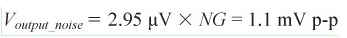 跨導(dǎo)放大器的輸入噪聲應(yīng)乘以此增益。ADA4505-2的0.1 Hz至10 Hz輸入電壓噪聲為2.95 μV p-p,因此輸出端的噪聲為: